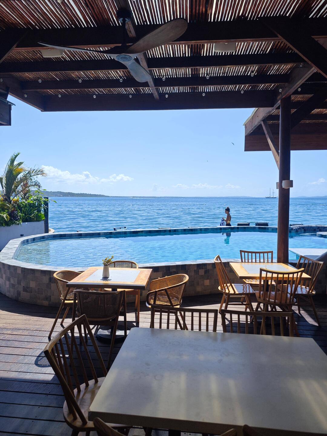 We headed back to the ship shortly after 9am. There we had breakfast together and drew up a plan for the day. We were going to go to the neighboring island of our island, because there was a bit more civilization there and at least two beach bars and beach restaurants 🏖️