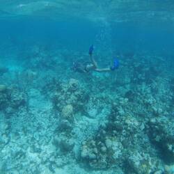 Wir bildeten insgesamt drei Gruppen (die vorhandenen Watches) und jede Gruppe hatte etwa 30 min Zeit, um das Riff in unterteilten Dreiergruppen zu erkunden. Ausgerüstet mit Schnorchel und Taucherbrille fuhren Lisa, Arne, Esther und ich mit unserem Dingi zusammen mit der ersten Gruppe an den Rand des Riffs. Dort ankerten wir, sprangen von Bord und sahen ein Fleckchen Erde, das wahrscheinlich niemand von uns noch einmal auf diese Weise - so weit vom Festland entfernt - je Wiedersehen dürfte. Etliche Stein- und Weichkorallen und die verschiedensten Fischarten taten sich unter unseren Füßen auf. Allgemeine Highlights waren die Sichtung eines Hais sowie eines Rochens. Ansonsten verzauberten uns viele Meeresbewohner mit ihren unterschiedlichen Färbungen und ihr Verhalten in der Umgebung ihres Zuhauses 🦈🐠