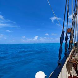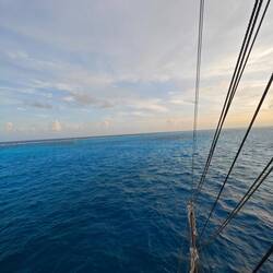 This morning started relatively early for me, as I wanted to watch the sunrise from the mast at this beautiful anchorage directly in front of the coral reef. So at 06:40 I climbed onto the most beautiful spot on the ship and spent the time there until 08:00 - breakfast. After this wonderful start to the day, I fulfilled a long-cherished wish: to teach an hour of philosophy on board. Why philosophy? Due to Heine's prediction that the first day towards Cuba would be accompanied by a similarly strong swell as on our departure from Panama, I decided - in view of the likely onset of seasickness in some of the students - to invest a little more in cognitive tasks and distracting conversations than in a lesson progress that most of them would probably have had to rework on this basis 📝