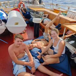 After dinner, everyone was able to jump into the water and cool off a little. The rest of the evening was then used for writing expedition reports and completing schoolwork that had been left behind. We also finally watched 'Moana 1' together in the Messroom. Everyone was finally looking forward to a much more pleasant night without rocking and seasickness 💤