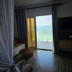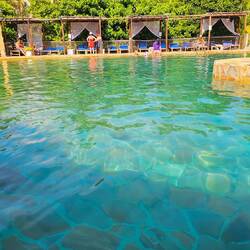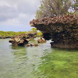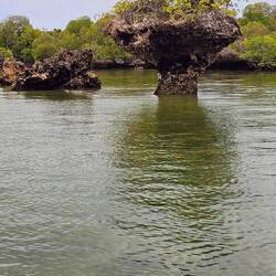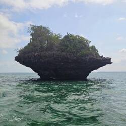 Aujourd'hui nous avons pris la pirogue locale pour nous rendre dans le restaurant typique à zanzibar "THE ROCK"avec seulement 16 places....on y accede part marée basse a pied ou en bateaux parLes mer