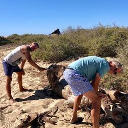 Weihnachtsvorbereitung in Todos Santos. Das Lagerfeuer am Strand ersetzt den Weihnachtsbaum in der Stube. Feliz 🪅