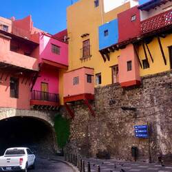 Guanajuato ist eine aussergewöhnliche Stadt. Keine einzige Strasse führt geradeaus, sondern sie kurven die steilen Hänge bergauf und bergab, winden sich um Hügel, verschwinden in Tunnels und tauchen dann plötzlich an einer anderen Ecke wieder auf. Ein großer Teil des Straßenverkehrs wird unterirdisch geführt, wobei alte, unterirdische Abflusssysteme, welche die Stadt vor Überflutungen schützte, heute genutzt werden.Læs mere