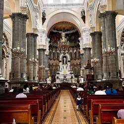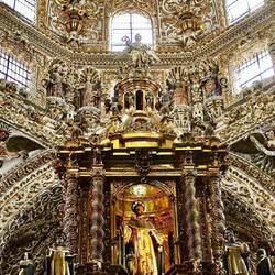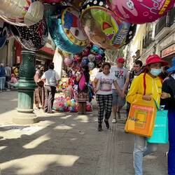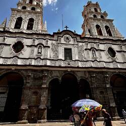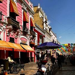 Ein Sonntag inmitten dem bunten Treiben im historischen Teil der Stadt Puebla. Märkte links und rechts. Die Stadt ist bekannt für ihr buntes Töpferhandwerk, noch bekannter, der Templo de SanRead more