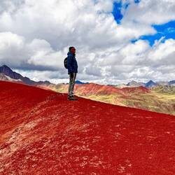 Die Wanderung auf den Aussichtspunkt ist atemberaubend, nicht nur wegen der spektakulären Landschaften, sondern auch wegen der dünnen Höhenluft auf 5200 Metern. Jeder Schritt kostet Kraft, doch dieses Naturschauspiel lohnt sich auf Schritt und Tritt. So kriegen wir vom Naturspektakel und der dünnen Luft nicht genug und wandern noch in völliger Einsamkeit ins Valle Rojo und um den „Hatun Rit’lyop“ zurück. Das kostete unsere Reisekasse zwar nochmals Eintrittsgelder, wir nehmen aber an, dass es sich hier um verschiedene Landrechte der Chechuas handelt, welche von der Weidewirtschaft leben.
