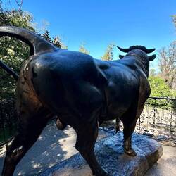Wir laufen bis zum «Fuente del Toro“», welcher an Hängen des «Cerro del Toro» gelegen ist. Es handelt es sich um eine lebensgrosse Eisenplastik des Bildhauers «Isidore Bonheur», welche Francisco Piria eigens aus Paris mitgebracht hat, um die von ihm entworfene Trilogie der Brunnen zu vervollständigen. «Piri», wie der Bulle liebevoll genannt wird, wurde 1911 eingeweiht und speiste hier eine Mineralwasserquelle. Das Wasser dieser Quelle fliesst aus dem Mund des eisernen Stiers. Wenn also das Wasser durch das Innere des Stiers fliesst, dann werden dieses gereinigt. Hier gehen wir verbotenerweise weiter, um die schöne Aussicht auf dem Cerro del Toro zu erkunden. Der Weg muss schon über längere Zeit gesperrt sein, oder die Vegetation ist so schnell gewachsen. Nur mit Strandschuhen bekleidet, geht es schlussendlich dann doch auf allen Vieren auf den Felsgipfel.