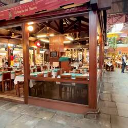 Wir gehen durch das alte Stadttor und befinden uns alsdann in der «Ciudad Vieja» – in der Altstadt von Montevideo. Sie ist gesäumt von kleinen Geschäften, Cafes und Restaurants. Von dort gelangen wir zum Puerto Mercado. Ein leckerer Geruch von gegrilltem Fleisch liegt in der Luft. Wir bekommen Hunger und sind hier genau richtig. Grillgemüse am Fleischspiess wird für Vegetarier auch angeboten. Das Asado wird in der Markthalle auf dem offenen Grill, wie es in Uruguay üblich ist, langsam gegart. Einzelne Steaks gibt es bis 400 Gramm.