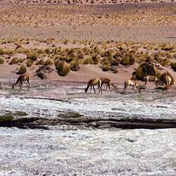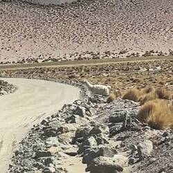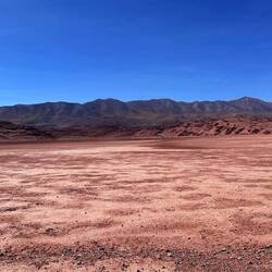 Die Fahrt führt uns durch wunderschöne Salzwüsten, gefärbt in sämtlichen, erdenen Pastelltönen. Wir versuchen (verbotenerweise) ein paar Schritte auf den Salz-Krusten, ab der Ruta zu gehen. DasLæs mere