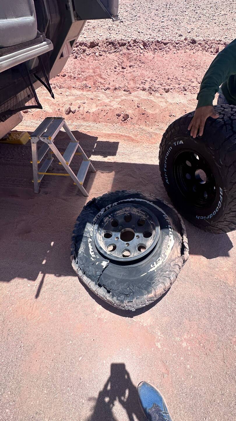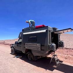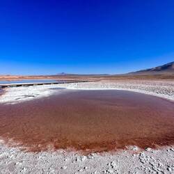 Der Salar Tolar Grande fordert unsere erste Reifenpanne vom Gröbsten. Innerhalb einer Stunde sitzt das Reserverad, aber ab nun gibts keine Reserve mehr, und wir haben noch 600 km Gravel vor uns.Læs mere