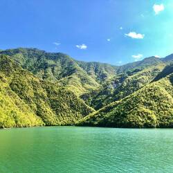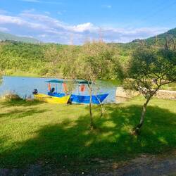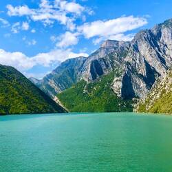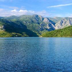 breitesten Abschnitt des Sees passiert, legt die Berisha an. Im Sommer laden