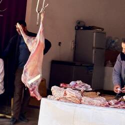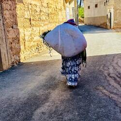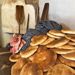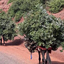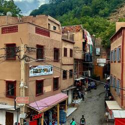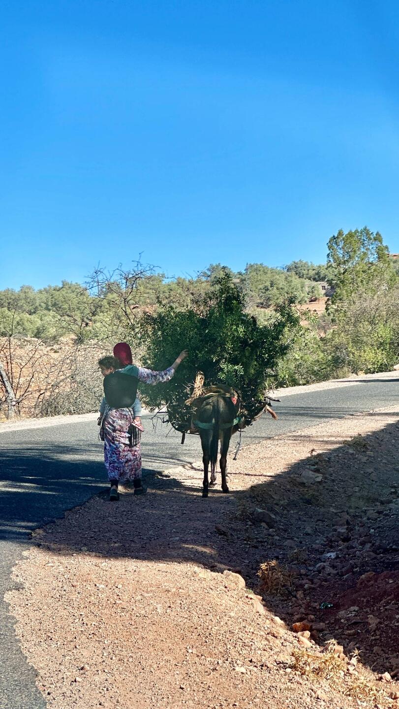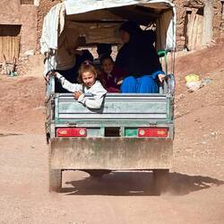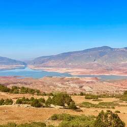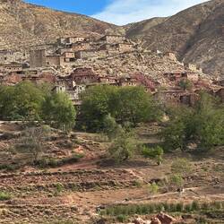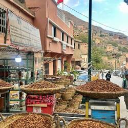Nach einer ruhigen Nacht etwas ab der Strasse, setzen wir die wunderschöne Szenerie durch das Atlasgebirge fort. Unser Zwischenziel ist Demnate, ein grösseres Städchen, wo wir wieder Treibstoff auffüllen wollen, und auch wieder einmal unser Portemonnaie. Dahin führt uns die Provinzstrasse RP3105. Hier passieren wir mehrere Berberdörfchen, weit weg von jeglichem Tourismus. Wer denkt, es gäbe hier keinen Stau, hat weit gefehlt. Die Provinzstrasse führt uns mitten durch den Markt in Ait Blal. Ich bin Allah-froh, sitze nicht ich am Steuer! Vorbei - geschafft - ohne Kratzer und ohne zermalmte Orangen.