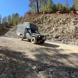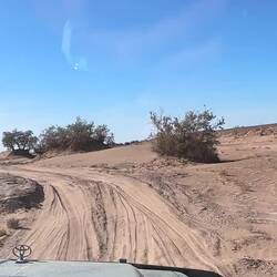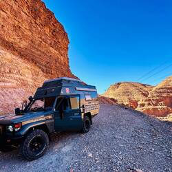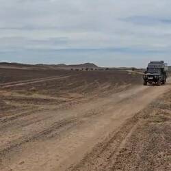 Aufgrund tiefer Spurrillen auf dieser Piste, kann sich der Schwierigkeitsgrad für die Passage erhöhen. Wieder sind wir dankbar für unsere hohe Bodenfreiheit. Die gesamte Strecke wird nicht insta