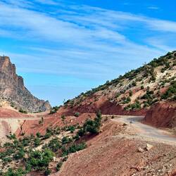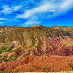 Wir passieren also wieder Millionen Jahre alte Felsen, deren Farben ein wahres Spektakel bieten. Manchmal sieht es aus, als ob wir durch Schinkenberge fahren – Fettschichten inklusive. Die roten und braunen Schichten enthalten viel Eisen und wurden vor etwa 145 bis 66 Millionen Jahren abgelagert, als das Gebiet noch ein anderes Klima hatte. Grüne und graue Felsen deuten darauf hin, dass es hier einmal Vulkane gab. Besonders faszinierend sind die hellen Kalk- und Dolomitsteine, in denen man manchmal versteinerte Muscheln oder andere Meerestiere findet, (welche wir natürlich nicht gefunden haben). Das zeigt, dass diese Region vor langer Zeit von einem flachen Meer bedeckt war.