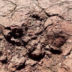Kurz vor Demnate kommen folgen wir noch einer Dino-Spur. Wir fühlen uns 180 Mio. Jahre auf der Zeitachse zurückversetzt.