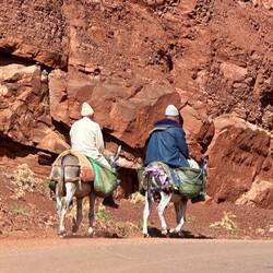 Auch ist das Atlas-Hochgebirge für zwei Klimazonen verantwortlich, wodurch es an Nord- und Südflanke zu unterschiedlichem Wetter kommt. Auf der Nordseite des Atlas ist das Klima mediterran, südlich davon saharisch-heiss. Zudem müssen die verschiedenen Höhenstufen mit einberechnet werden – ob Nord oder Süd, je höher wir kommen, desto kälter wird es. Wir erreichen immerhin 2700 m.ü.M. Auf den 4000er-Gipfeln liegt meist das ganze Jahr über Schnee.