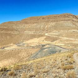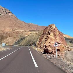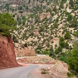 Nach unsere Tank-Geldautomat- und Verköstigungspause in Demnate, fahren wir die Nationalstrasse N23 gege Süden mit Ziel Ouarzazate. Nationalstrasse heisst nicht immer gute Strasse! Viele Baustellen, Strassenverlegungen und Steinrutschabgänge verlängern unsere Fahrt ins Ungewisse.
