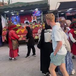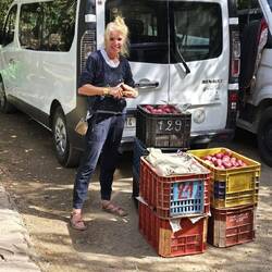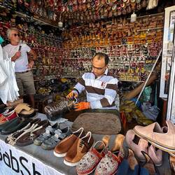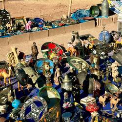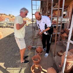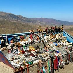 An einem Verkaufsstand interessieren wir uns für einen 6-kg-Amoniten. Handeln dann diese grosse Schnecke auf immerhin einen Drittel des Preises herunter. Aber betreffend Echtheit diesww Antiquität sind wir uns nacht ganz sicher und lassen den Kauf lieber. Samuel kauft dafür ein Tajine-Set - was sicherlich echt ist.