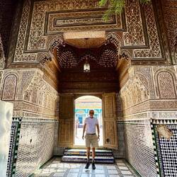 Wir besuchen Bahia Palast, einer der beeindruckendsten Paläste von Marrakech, befindet sich in der Medina. Obwohl das genaue Baudatum unbekannt ist (einige Quellen nennen 1866 - 1867), weiss man, dass der marokkanische Architekt El Mekki zwischen 1859 und 1873 eingesetzt wurde, den Palast für Si Musa zu errichten.