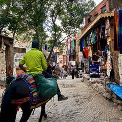 Wir kämpfen uns durch die schmale „Gasse“ den Berg empor und haben wieder einmal berberische Rushour erwischt. Wir sind froh, können wir in einer Haarnadelkurve, kombiniert mit extremer Steigung, Horu’s Kupplung mithilfe der Untersetzung unterstützen. Aus dem Stand hält auch die Handbremse ihr Versprechen nicht mehr ein. Und ich bin doppelt froh…ihr wisst schon, worüber…