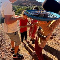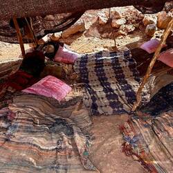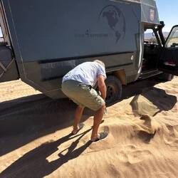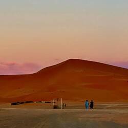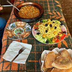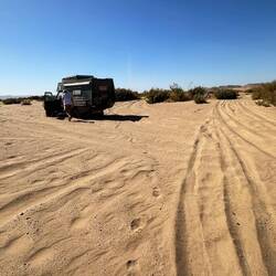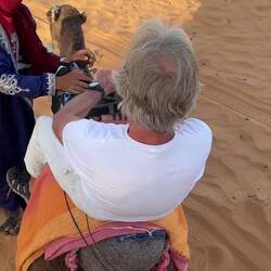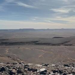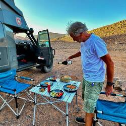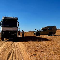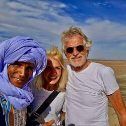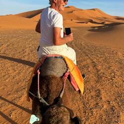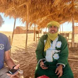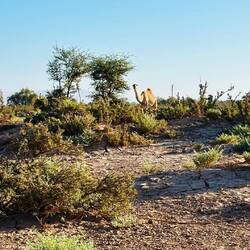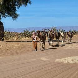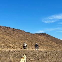 Kaum haben wir unseren Campingtisch aufgestellt, kommt, wie aus dem Nichts, ein Ziegenhirt und unterbricht unsere Einsamkeit. Es ist keine Fatamorgana! Er bittet uns um Wasser für ihn und seinen Hund. Wir sprechen etwas miteinander (Google-Translater-sei-Dank). Aber er muss wieder zu seinen 56 Ziegen zurück. 15 Minuten später, Upgrade: Ein Dromedarhirte auf Mofa kommt vorbei, etwas direkter: er habe Hunger. Wir streichen im ein dickes Nutellabrot. Er wünscht dies aber „Take-away“, schwierig. Wir packen ihm noch Apfel und Wasser dazu. Interessant dabei ist, sie wollen sich nie zu uns zum Essen oder Trinken setzen. (Anstand?, Scheu?, Glaube? Nomadentum?).