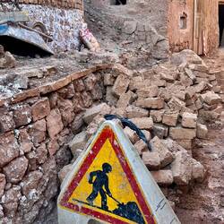 Entlang der ausgetrockneten Flussbette sind die schweren Überschwemmungen noch gut sichtbar. Marokko wurde im September 2024 von heftigen Regenfällen heimgesucht, die insbesondere in den Bergregionen des Hohen Atlas und Anti-Atlas zu verheerenden Verwüstungen führten. Diese aussergewöhnlichen Wetterereignisse, die durch eine Kombination aus Klimawandel und geografischen Faktoren begünstigt wurden, haben in den betroffenen Gebieten erhebliche Schäden an Infrastruktur und Eigentum verursacht und das Leben vieler Menschen beeinträchtigt. Auf den ersten Blick ist für uns nur das Wiederinstandsetzen der Strassen sichtbar. Ganze Wegstrecken wurden weggerissen.