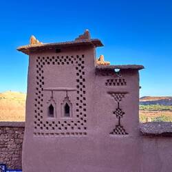 Die Ksar von Aït Ben Haddou ist ein herausragendes Beispiel für die traditionelle Lehmbauweise in Marokko. Diese befestigte Stadt besteht aus einem Gemisch aus Lehm und Stroh, das den Gebäuden ihre charakteristische rötliche Farbe verleiht. Die Stadt ist ein Labyrinth aus eng aneinander gebauten und teilweise ineinander verschachtelten Wohnburgen, den sogenannten Tighremts. Diese Tighremts sind mit Ecktürmen und Zinnen versehen, die dem Ort ein wehrhaftes Aussehen verleihen. Besonders beeindruckend sind die geometrischen Motive, die viele der Ecktürme schmücken und die handwerkliche Kunstfertigkeit der damaligen Baumeister widerspiegeln. Wir erleben Aït Ben Haddou als lebendiges Freilichtmuseum, das uns in die Vergangenheit entführt.