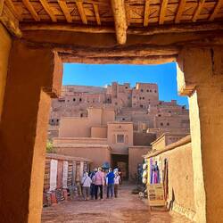 1000 Jahre zuvor war Ait Ben Haddou einst ein wichtiger Handelsposten für Karawanen, die in die Sahara unterwegs waren. Das malerische Dorf liegt auf 1300 Metern und befindet sich circa 180 km von Marrakech und nur 30 km von der Wüstenstadt Ouarzazate entfernt.
