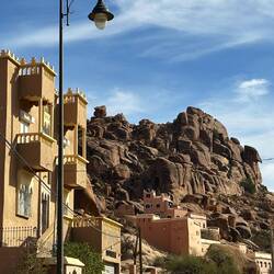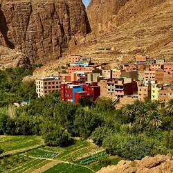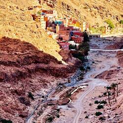 Die Landschaft des hohen Atlas zeigt sich hier eher rauh, und so wurden die Lehmdörfer oft an die Berghänge gebaut, damit jedes noch so kleine Stück fruchtbares Land in den Flusssenken genutzt werden kann. Es gibt nur zwei wirklich gute Passstrassen durch das Gebirge, ansonsten findet man hauptsächlich steinige Pisten sowie kleine Maultierpfade zum Passieren. Diese Tatsache verhindert bis heute in den meisten Gegenden den Massentourismus, und so blieben viele der tiefen Täler und einsamen Hochebenen relativ unberührt.