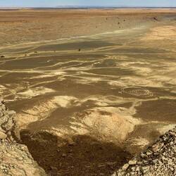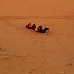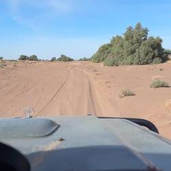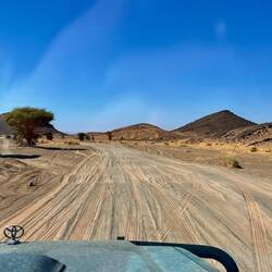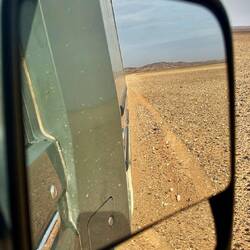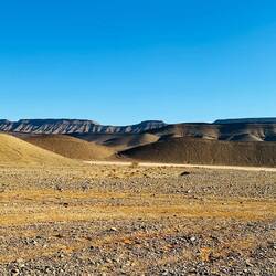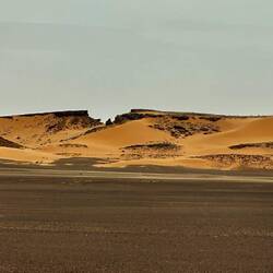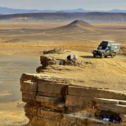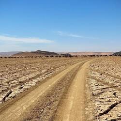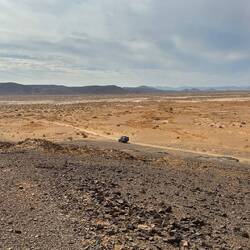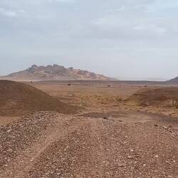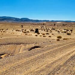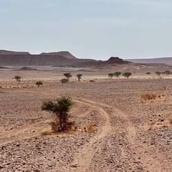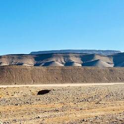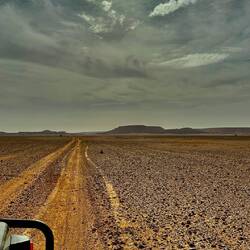 nd gehalten und von Einheimischen kaum genutzt. Den ganzen Fahrtag werden wir vom Djebel Quarkziz, dem schwarzen Geburgszug im Süden begleitet. Wir finden einen einsamen Übernachtungsplatz (was hier nicht so schwierig ist). Die ganze Fahrt haben wir nur Dromedarseelen getroffen.
