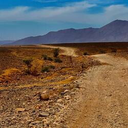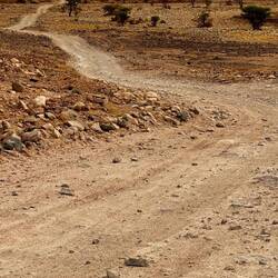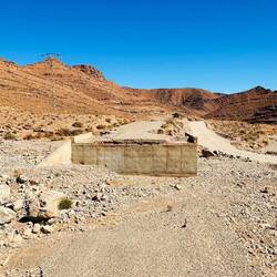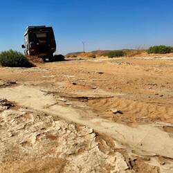 Anschliessend fahren wir wieder Richtung Westen über „a street with no name“, grösstenteils geteert, aber Flussbett und Strasse streiten sich halt immer wieder ums Terrain, und da gibt es Verlierer.