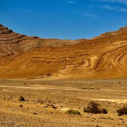 Anschliessend geht es Richtung Süden weiter auf der RR 107. Erneut fahren wir durch die malerischen Kulissen des Antiatlas mit seinen umwerfenden Bergformationen, tranchiert durch unendlich viele Sedimentablagerungen.