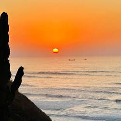 Nach einer eintönigen Fahrt, nordwärts, entlang der Atlantikküste auf der RN1, kommen wir in Sidni Ifni, dem „Tor zur Sahara“ an. Hier treffen die tosenden Wellen des Atlantiks auf eine karge Landschaft, den Ausläufern einer der grössten Sandwüsten der Welt. Nicht jeden mag diese Kulisse mit dem fälschlichen Eindruck der Ödnis sofort inspirieren, auch wir brauchten einen zweiten Blick.