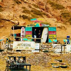 Nach einem kleinen Strandspaziergang geht es weiter zur nächsten Surf- und Fischerbucht: Imsouane ist ein marokkanisches Fischerdorf zwischen Agadir und Essaouira. Es ist vor allem als erstklassiges Surfziel bekannt, dies dank seiner langen Wellen, die sich ideal für Anfänger und Fortgeschrittene eignen. Neben dem Surfen lockt das Dorf Touristen auch mit seiner unberührten Natur, seinen Stränden und seiner friedlichen Atmosphäre. Der Surfspot „Bay“ ist berühmt für seine lange, nach rechts brechende Welle, die mitunter als eine der längsten der Welt gilt. Der Spot „Cathedral“ bietet etwas flachere Wellen. Hier schauen wir die längste Zeit einer anderen Sportart zu: dem Stand-Up-Paddling-Surfing. Während wir Orangensaft und Pommes geniessen, müht sich da einer ab und präsentiert den Surfern, wie man praktisch jede Welle abgewinnen kann: Mit zusätzlichem Arm- und Schultereinsatz. Der Wahnsinn!