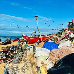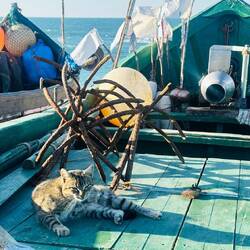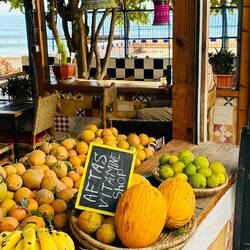 Nur hie und da erreicht ein kleines Reisegrüppchen den Stand, zwischendurch sind wir ganz alleine. Von den kleinen, herzigen Strandrestaurants können wir auslesen, alle haben sie geöffnet - für 2 Gäste. Samuel bekommt endlich seinen lang ersehnten, frischen Dorade und wird sofort wieder von hungrigen Katzen umgarnt. Da bin ich, als Vegi, klar im Vorteil!Read more