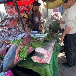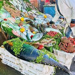 Jeder versucht seinen Fang unter die Leute zu bekommen. Hier finden sich sogar Restaurants und kleine Garstände am Rand des Hassan-Platzes, wo man den Fisch selbst aussuchen kann, welcher dann frisch und vor den Augen zubereitet wird.