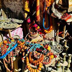 Wir laufen 2 km Richtung Stadtzentrum. Der Souk in Tiznit ist ein wahrer Segen für die lokale Bevölkerung, da er ihnen komplizierte Einkaufsreisen erspart und es ihnen ermöglicht, über die lokale Produktion direkt zu verhandeln: Vieh, Geflügel, Eier, Kunsthandwerk usw., alles gibt es hier. Wir finden sogar 2 verstaubte Weingläser, welche in Tiznit wohl eher für Orangensaft gedacht wären.