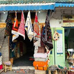 Die Souks in Essaouira sind deutlich kleiner und entspannter, als in Marrakesch oder Fès. Hier können wir gemütlich stöbern, ohne ständig angesprochen zu werden. Und trotzdem: wieder ein Teppich mehr im Gepäck!