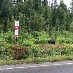 Per Zufall einen Schwarzbären beim Fressen gesichtet (waren zu viert und konnten unseren Sicherheitsabstand minimieren), doch der Anblick blasender Buckelwale in der Bucht hat uns dabei abgelenkt 🐳 🐻.