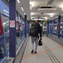 We’re walking around the airport like lost NPC tourists, spinning in circles, whisper-shouting: “Is this him?” “No.” “Maybe?” “No.” “Why are there 400 men with signs???”