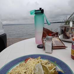 Nachdem es gestern bei Ankunft noch kühl und nass war, war der See heute morgen ruhig und wunderschön. So konnten wir unser Frühstück direkt am See genießen. Also haben wir uns anschließend auf Czytaj więcej