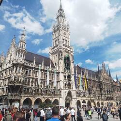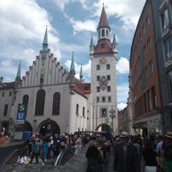 Arrived at Ebersberg after early pick up with group from Munich airport. We were too early for check in so went into Munich to see Marienplatz area.