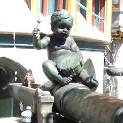 A quiet Sunday morning in Nuremberg. Very little open. Sat with GLs while they had a burger. Overhead music from church.
