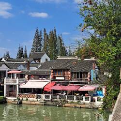 Heute früh haben wir das Wasserdorf Zhujiajiao besucht, mit seinen zahlreichen Kanälen, Brücken und unzähligen Läden und Garküchen.