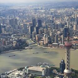 Anschließend wartet der Shanghai - Tower auf uns, es geht hoch hinauf, auf den dritthöchsten Wolkenkratzer der Welt. Wir haben Glück mit dem Wetter und einen tollen Ausblick auf die Stadt!