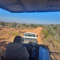 Nach kurzer Busfahrt zum Krüger Nationalpark ging es gegen 05:30 Uhr mit dem offenen Jeep in den Park. Ein Frühstückspaket haben wir mitbekommen, auf die Tasse Kaffee habe ich lieber verzichtet😅Baca lagi