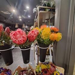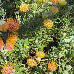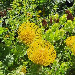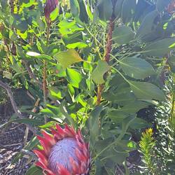Die Protea ist eine heimische Pflanze, zu sehenBaca lagi