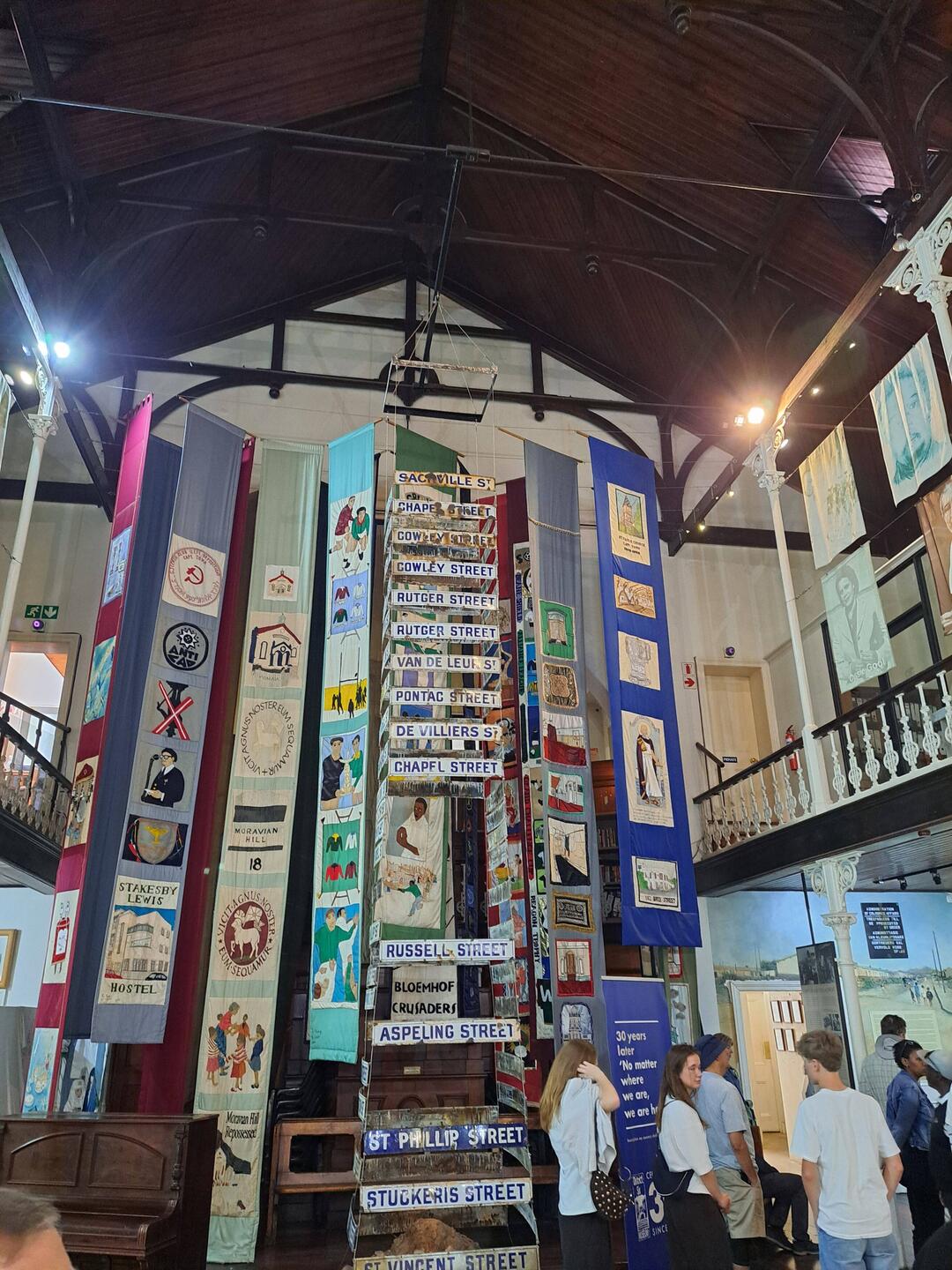 Anschließend haben wir mit dem Bus eine kleine Stadtrundfahrt gemacht, das Museum zur Geschichte der Apartheid (District Six Museum) Es ist auch eine Geschichte von Zwangsumsiedlung und Zerstörung.Baca lagi