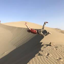 Er durch die Wüste gefahren. Zwischendurch an nem Baum mit "Baumbrombeeren" gehalten, kein plan was es war 😂