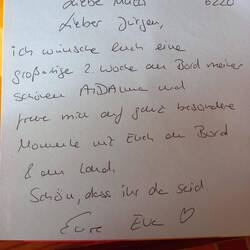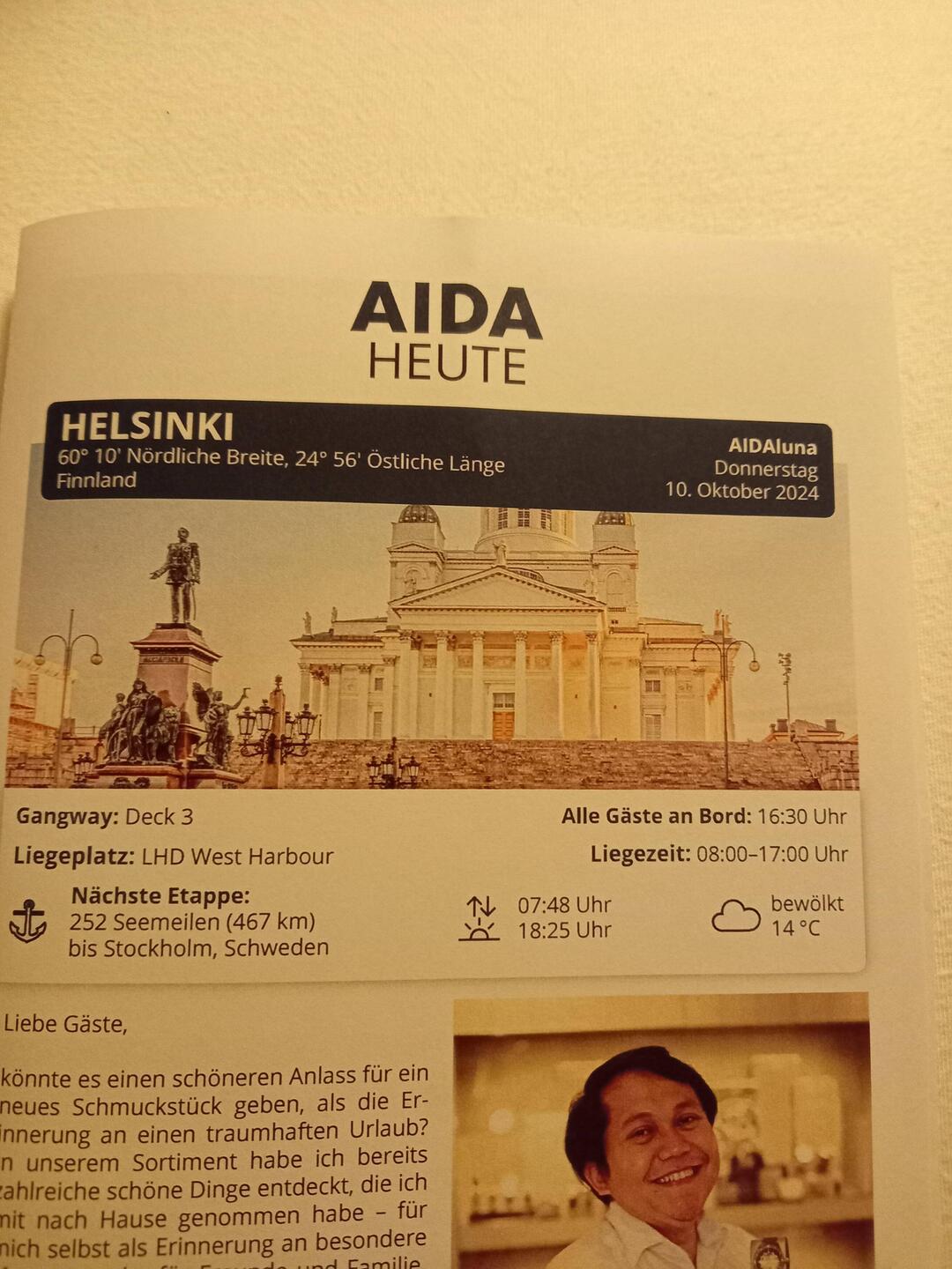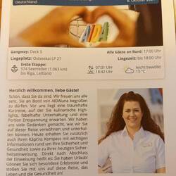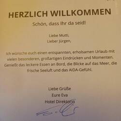 Ein Willkommensgruss in unserer neuen Kabine von "unserer " Hoteldirektorin.