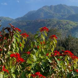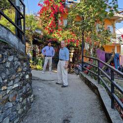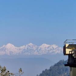 Great sleep in this peaceful place and woke to thick mist which gradually cleared to give tantalising glimpses of the Himalayas and then the full vista.